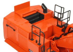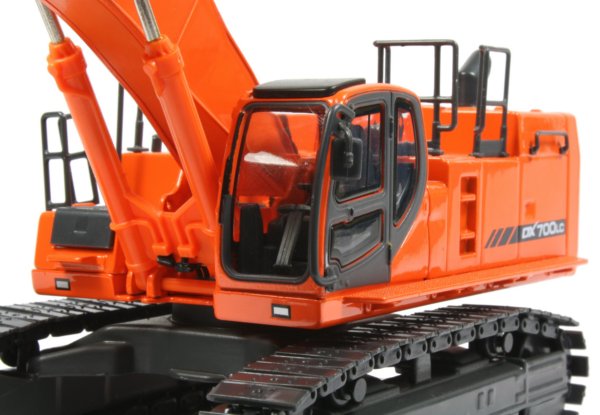 The paint finish is good throughout with crisp printing of the Doosan name on the boom and counterweight with the machine designation along the sides and safety labels on the rear. The DX700 is a welcome addition to the Doosan model range and is accompanied by the Doosan DA40 articulated dump truck (Pictured below) which has also been produced in 1:50th scale.
