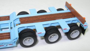The roof has fitted warning beacon, air horns and sun visor while the cab doors have fitted rear view mirrors. The front mounted "Wide Load" warning panel is removable. Flexible service lines are visible behind the cab and the fifth wheel can be tilted slightly although there is no working coupling as is now found on the Sword trucks. There are a number of plastic parts on the model but it is very hard to identify what is plastic and what is metal as the colour match is excellent. This is another fantastic truck model at an amazing price for the level of detail.