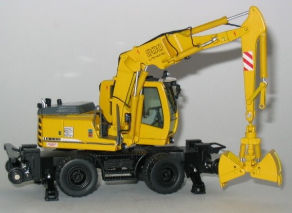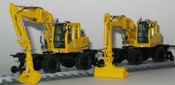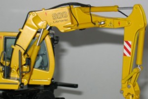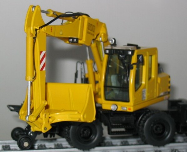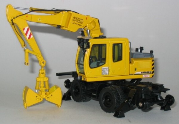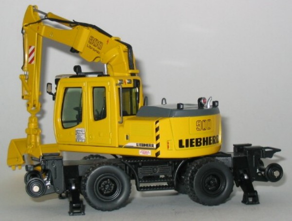 This is the Liebherr A900C ZW "Road/Rail" wheeled excavator from NZG. The detail level is amazing for a model so small. The body casting is great and shows all the detail of the real machine, right down to the double cab doors and all the warning & working lights. The cab is highly detailed with a fully reproduced interior featuring 2 seats, handrails, mirrors and internal controls.