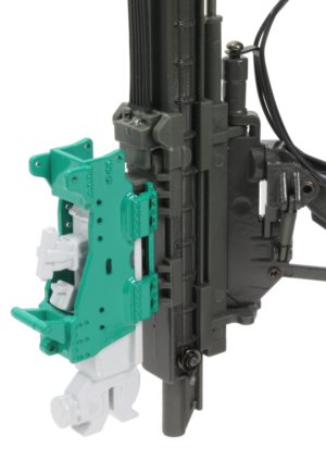 While the main telescopic leader mast is the same as before, featuring the ability to fold down for transport and to extend fully, causing the trolley to rise as the mast is extended, there are additional ropes added to the mechanism with updated hydraulic supply lines and the hammer is a totally new casting.