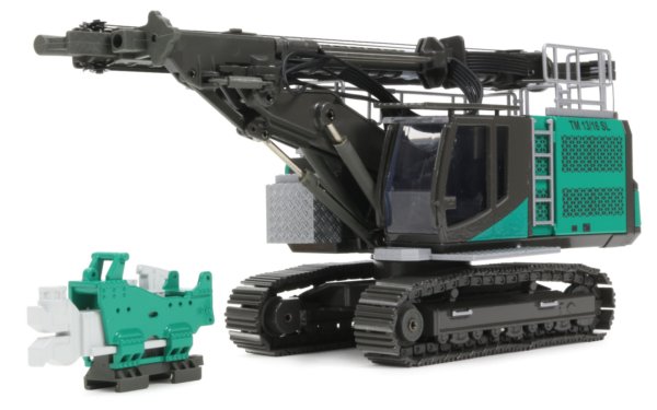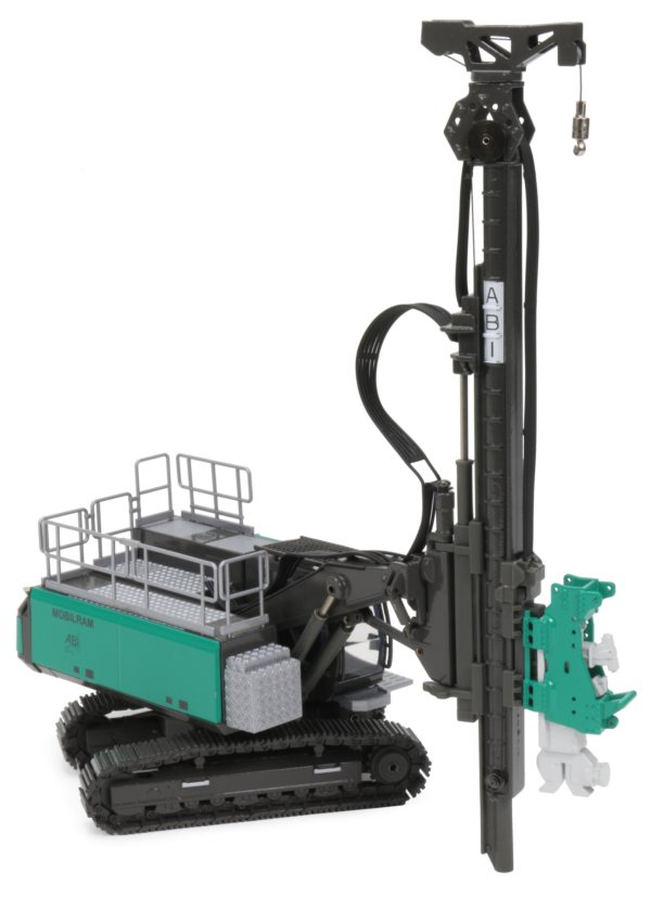 Conrad has produced several different coloured versions of an ABI drill rig in the past along with an accessory set containing two additional work tools which can be connected to the trolley. While these models are quite old now, ABI has once again turned to Conrad to produce an up-to-date piling rig in the form of the TM 13/16 SL which is mounted to a SR 30T. This is the same size of machine currently released in 1:50th scale and, showing testament to the design of the leader, there are no changes from the original tooling. What has changed however is almost everything else.