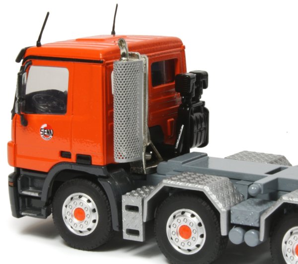 The lower front grill has a fine textured surface with inset light housings integrated into the bumper, complete with clear grazed lenses. Self fit rear view mirrors and roof aerials need fitting into the holes in the cabin frame to finish off the aesthetics. The paint finish is very good, as expected with clear printing of the orange highlighting and Senn logos.