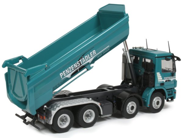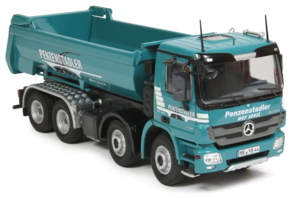 Presented here is the limited edition 1:50th scale 4-axle Mercedes-Benz Actros with half-pipe tipping body from NZG in the Penzenstadler company decoration.