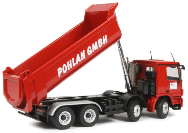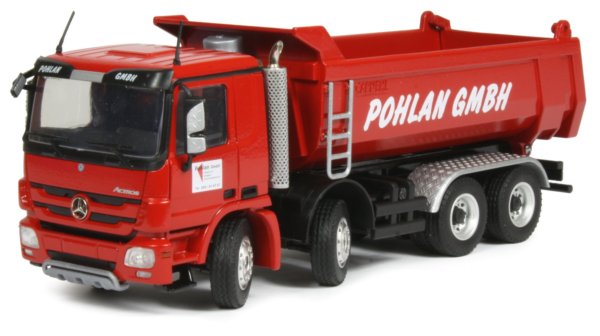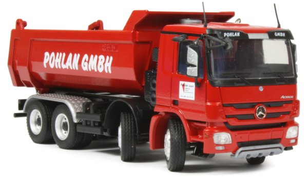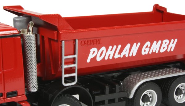 Presented here is the 1:50th scale Mercedes Benz Actros MP3 8x4 with Carnehl tipping body from Conrad which has been produced in a very limited run decorated in the Pohlan GmbH company colours and available exclusively from Spiel+Modellkist'l.