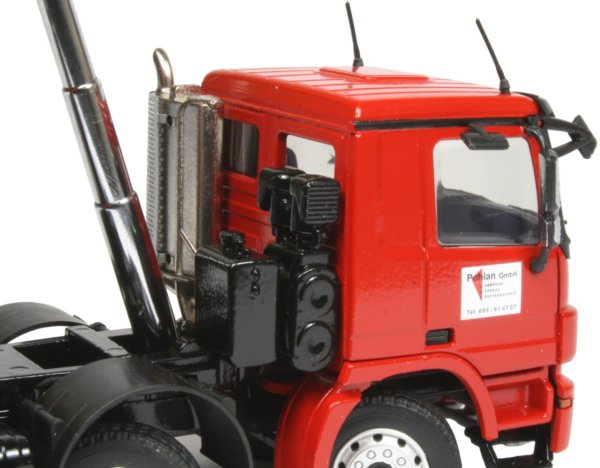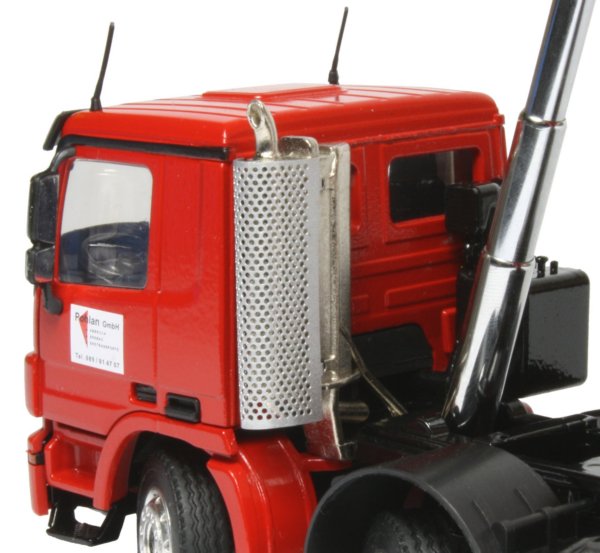The cab casting features crisply modelled grills and the chromed Mercedes logo is prominently displayed centrally. Integrated driving lights with clear plastic lenses have been added to the bumper with small amber indicator lights on the corners whilst a protective plate has been fitted to the lower edge of the bumper panel.