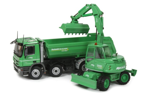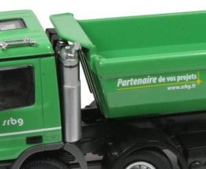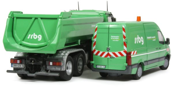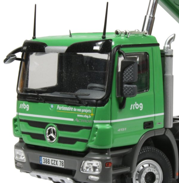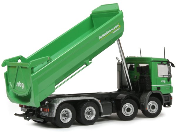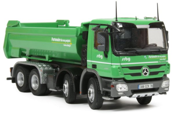 Presented here is the exclusive 1:50th scale 4-axle Mercedes-Benz Actros with half-pipe tipping body from NZG in the SRBG company decoration, part of the VINCI Group.
