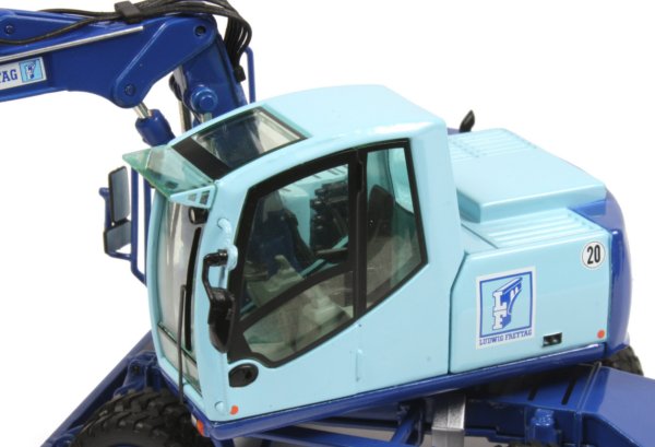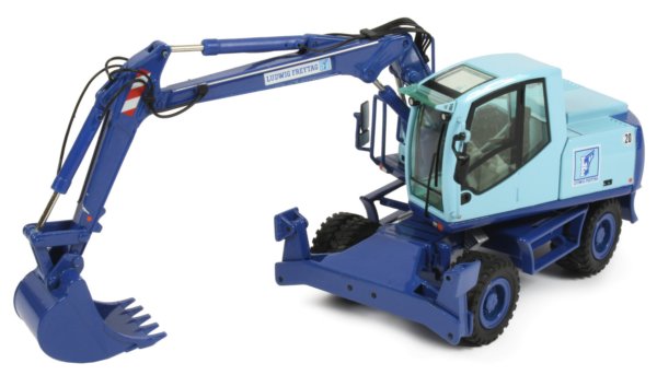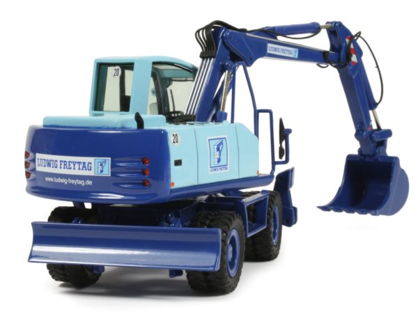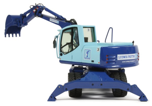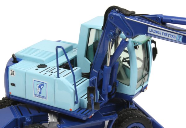 Presented here is the limited edition 1:50th scale Atlas 140W wheeled excavator from NZG in the distinctive blue colours of Ludwig Freytag. The model has some very nice detailing including flexible hydraulic pipe work on the boom and stick along with a fully functional boom and bucket linkage.