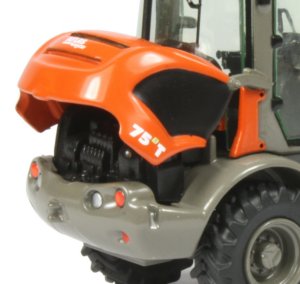 The loader arm features a telescopic section including actuating ram with a coupler allowing the bucket to be detached. It is a pity there are no pallet forks included with the model although NZG has announced a fork attachment accessory which will fit the coupler, as well as fitting the arms of the AR65E.