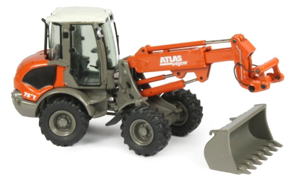 Presented here is the 1:50th scale Atlas Weycor AR75E T Telescopic boom wheel loader which has been manufactured by NZG. When it comes to small loaders, there are some interesting designs out there and the AR75e T has characteristics of both a wheel loader and telescopic handler in one package.
