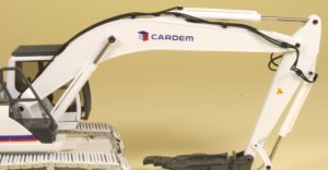 Presented here is the exclusive edition 1:50th scale Case CX250C tracked excavator from Conrad which has been finished in the white colours of Cardem, a member of the VINCI Group and fitted with a concrete shear attachment.