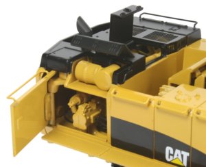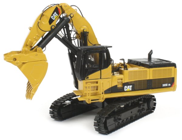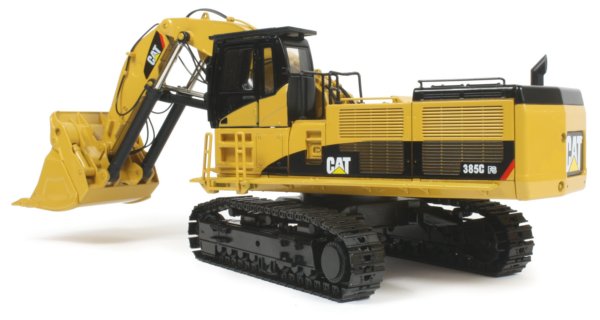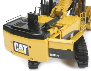 Presented here is the 1:48th scale Caterpillar 385C FS tracked shovel from CCM. The 385C shovel has accurately captured all the details of the full sized machine very well, from the functioning shovel with hydraulic operated actuation, replicated tooth and wear plating and flexible hoses to the protective covers over the stick and boom cylinders.