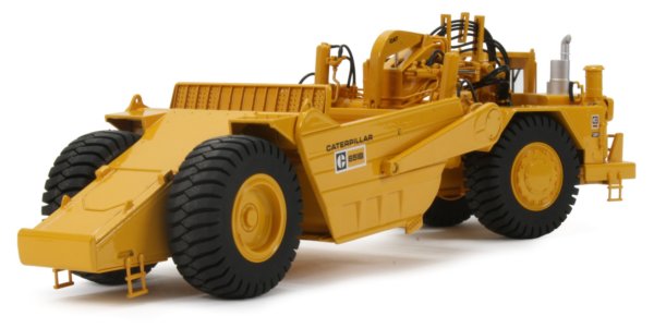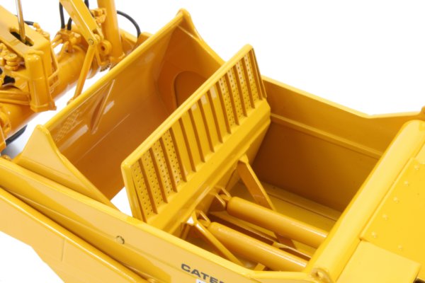 The 651B single engine scraper is configured with an open, canopy covered operator’s station which highlights the curved seat, hand controls and printed console while the front perforated grill allows glimpses of the interior engine bay. Detailing includes painted lights, authentic scaled steps and grab rails and a front windscreen with wiper and printed window seal.