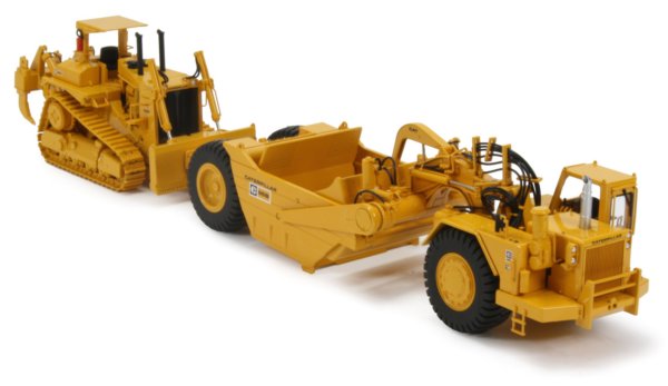In 1969, Caterpillar added the “Push-Pull” version offering the ability to tandem a pair of 657Bs to put 1900hp to the cutting edge of each single machine to increase production rates. As for the 651B, it had a single 550hp Caterpillar D346 diesel engine producing a top speed of 34mph. It is no surprise that CCM has chosen to produce exacting 1:48th scale replicas of the 651B & 657B motor scrapers, each packed with superb detailing and functionality.