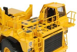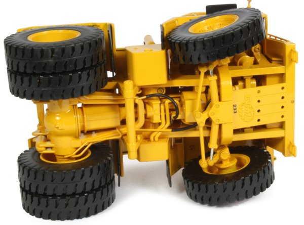 The underside of the truck has a modelled automatic power shift transmission and drive-train to the rear axle with hydraulically powered movement of the front axle steering mechanism and functional rear suspension. Both fixed piping and flexible hoses have been added on the undersaide with an embossed CCM logo located on the lower engine protection cover.