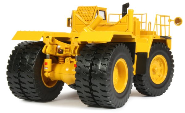 The tractor is based on the Cat 777 with the removal of the dump body and tip cylinders which have been replaced with a rear frame incorporating covers over the rear wheels and a pivoting hitch allowing it to connect with the MEGA MET-185 low loader trailer.