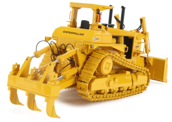 The push arms are connected directly to the main frame and have a good range of height adjustment. The rear of the model is complimented with a 3-shank ripper unit which authentically captures the full range of movement of the original, fully plumbed with hydraulic lines and pinned in place shanks.