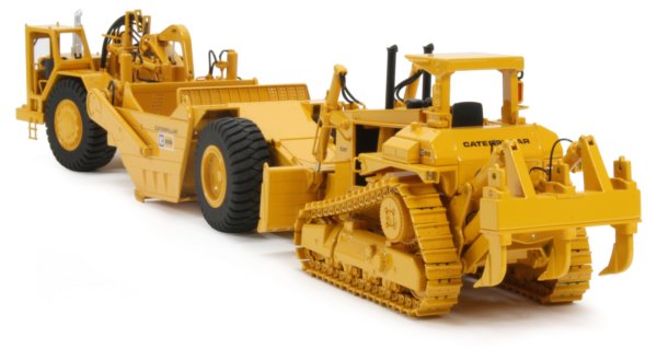 Presented here is the twin stack version of the 1:48th scale Cat D10 pusher from Classic Construction Models, the ideal tractor for assisted scraper loading.