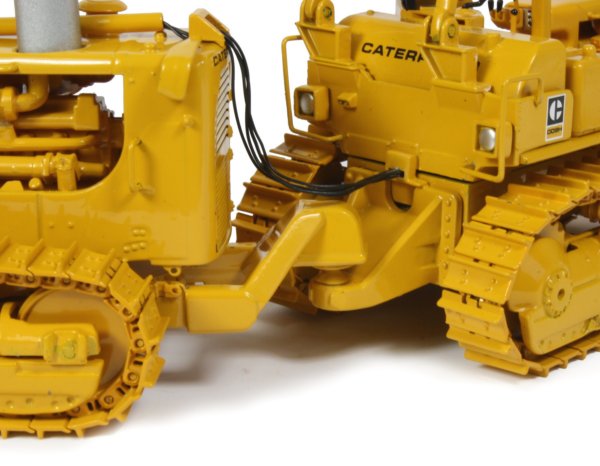 The connection between the tractors is with a pivoting frame and a socket allowing both units to remain connected over rough terrain with a cable bundle linking the two together. The rear structure of the front tractor has good bolt fixing definition with authentically scaled metal grab rails added throughout the model.
