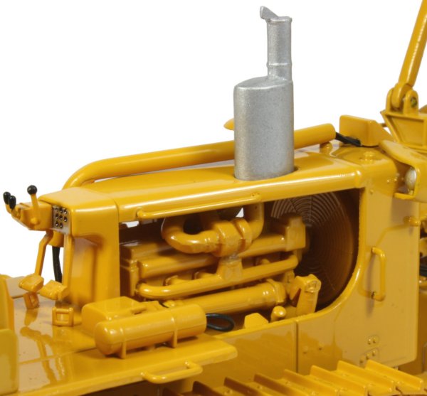 The model features a raised and offset driver’s station which is mounted at a 45 degree angle to give a good view of the front blade and rear tractor while protected from the elements with an open ROPS canopy. All hand and foot controls have been modelled with a set of controls also present on the rear unit although as typical at the time, the rear seat has been omitted.