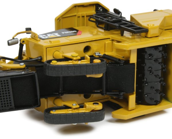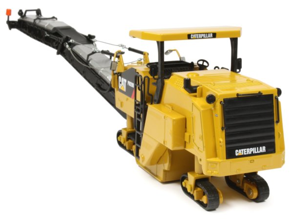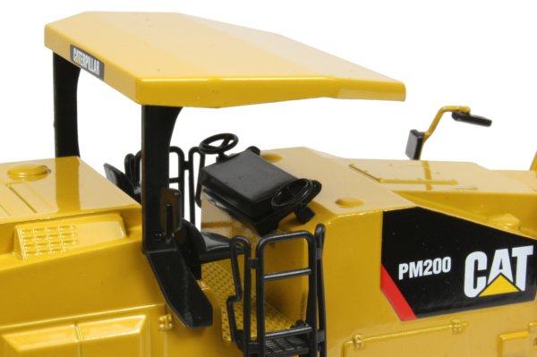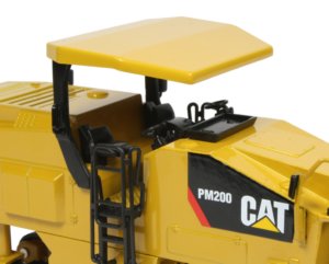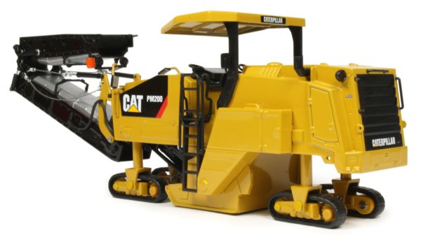 Presented here is the 1:50th scale Caterpillar PM200 cold planer from Norscot. The PM200 has been designed to efficiently remove asphalt and concrete material from roads and pathways with a standard operating width of 2m with a 2.2 metre option and several cutting rotors available with different pick holder spacing. Powered by a Cat C18 ACERT diesel engine, the chassis is propelled by four track frames offering good manoeuvrability with a hydraulically folding discharge conveyor and a maximum cutting depth of 320mm.