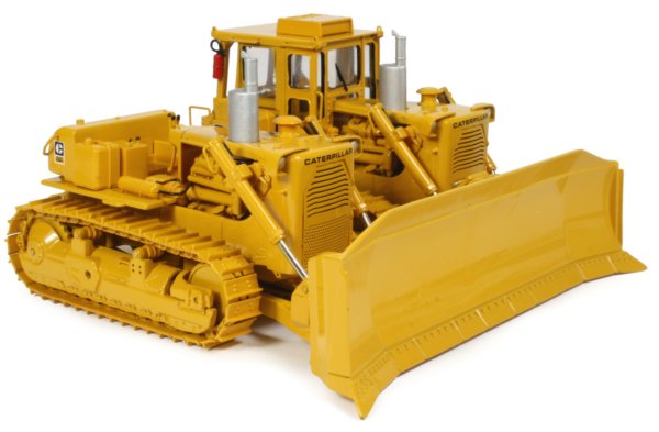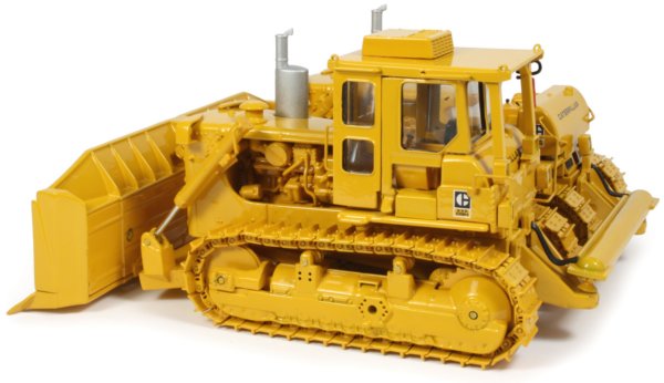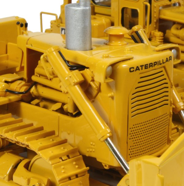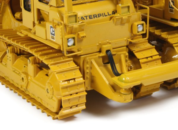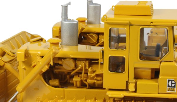The SxS D9H is a very unusual machine with two tractor units working in unison to power the large blade. It is good to see CCM have chosen to produce a replica of this unusual piece or iron, although not a surprise considering most of the casting work has already been done for the standard D9H version. There is a surprising amount of fine detailing from the modelled open engine bays which have engine blocks, filters, air cleaners and cooling fan detailing all present with the large exhaust stacks prominently rising up from the bonnets.