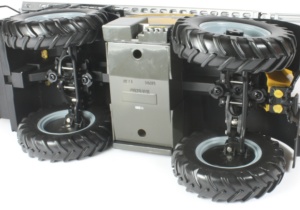 One of the most surprising features on the model is the all-wheel steering and suspension mechanism. This allows the model to demonstrate different steering modes, including crab steering but this is only one interesting aspect.