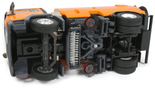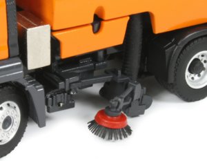Despite the small dimensions, the 1:50th scale die-cast model from Conrad really packs a punch with some very nicely engineered solutions for the delicate sweeper arm mechanisms. The model has been decorated in an orange colour scheme with grey chassis and markings specifically for the collector market on a MAN TGS chassis.