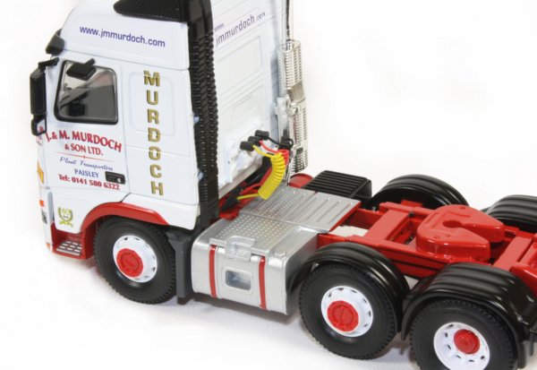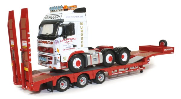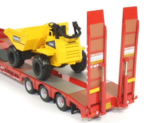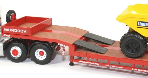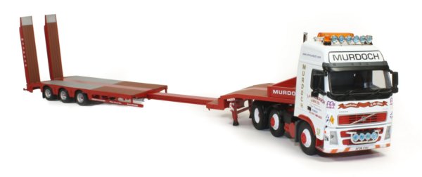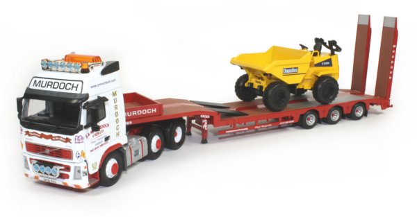 J&M Murdoch & Sons have been in operation since 1965 and provide a range of services in the transport and waste disposal / recycling sectors. The 1:50th scale model reviewed here features the Volvo FH prime mover with 3-axle Nooteboom extending step frame trailer and Thwaites site dumper load in the J & M Murdoch & Sons company decoration from Corgi.