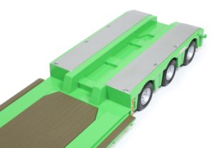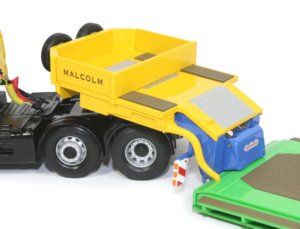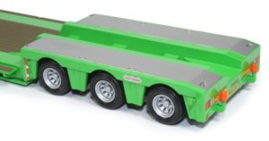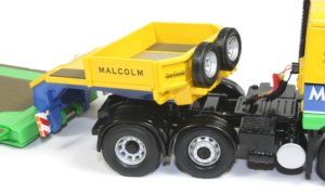 The gooseneck can be detached from the bed and this is straight forward although the hydraulics used to adjust the gooseneck are very loose so the bed cannot be realistically posed in the raised position. Chevron boards are fitted to both sides of the gooseneck with amber painted warning lights. |