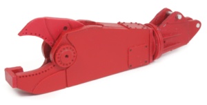 Stick mount scrap shear to fit the Hitachi ZX870. The attachment has plenty of detail with a 360 degree rotating body and fully functioning jaw hydraulic.