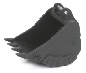 The bucket has very crisp wear plate detailing on the underside and egdes with four large shaped teeth and ridged edges on the upper parts of the bucket face. This is a good alternative to the bucket supplied with the ZX870 model and gives it a more rugged appearance.