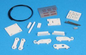 The kit contains shaped plastic parts to assemble an Oilquick OQ80 coupler, complete with flexible piping, adaptor plate and stickers.