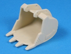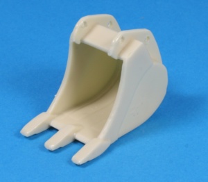 The 3 tooth bucket can be connectd to the R954C quick coupler and has some good casting detail of the wear protection on the underside of the bucket. A little filing is required here and there to remove the excess flash.