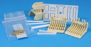 The root rake is another interesting item, requiring constructing from the precision cut plastic parts. Two versions have been produced, one to fit the R954C quick coupler and the one highlighted here which fits the Cat 330D/336D from Norscot.