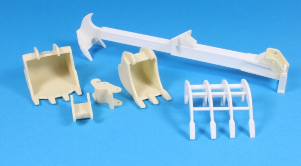 The kit contains resin boom sections with plastic detailing parts and hydraulics.
