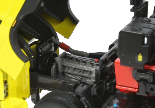 The front of the cabin has a very finely detailed front grille with inset glazed lenses integrated into the contoured lower body panel. The cabin tilts forward to reveal the detailed engine block and radiator beneath, complete with piping.
