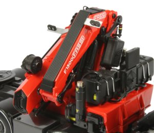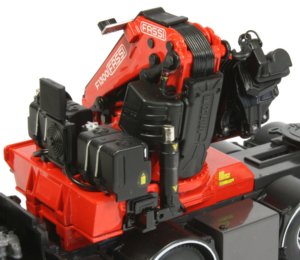 The crane realistically folds within the profile of the truck chassis and has all the tanks and control housing modelled, complete with hydraulic cooler.