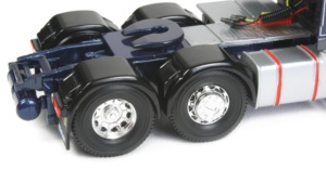 The DAF 105 tractor has been nicely modelled with good detailing of the front grill and body panelling, complete with a low mounted chromed light bar and authentic numberplate. The printing throughout the model is of a very high standard with crisp graphics found throughout, complemented with a number of white pin lines.