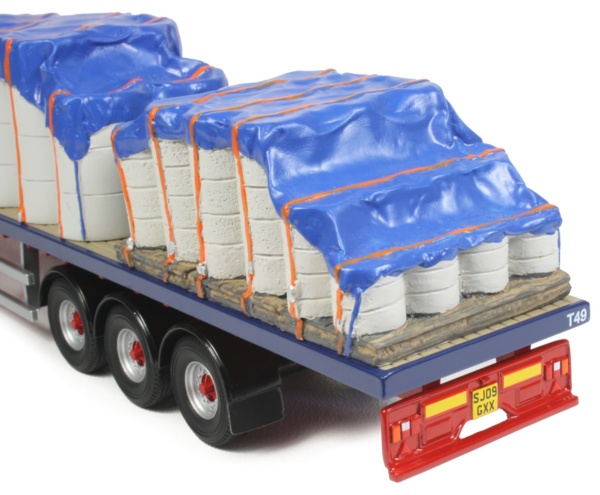 The model comes with an authentic sewer pipe load consisting of three separate sections, each depicting different diameter pipe sections which are nicely done and covered with a blue coloured tarpaulin sheet with orange tie-down straps.