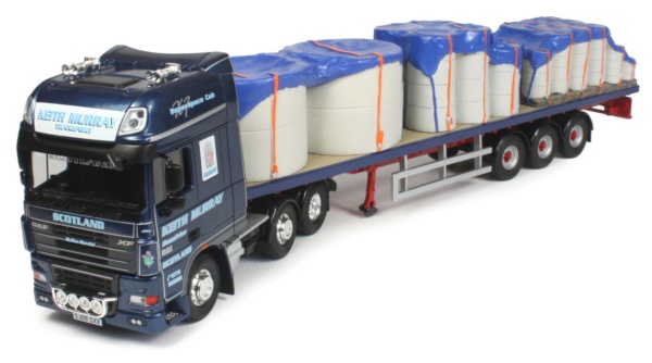 Presented here is the 1:50th scale DAF 105 truck with flatbed trailer and construction sewer pipe load in the Keith Murray Transport company colours from Corgi.