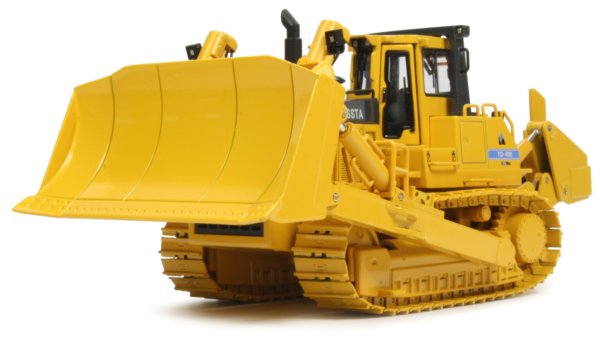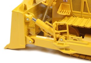 The replica has some rather nice touches including the engine compartment which has see-through mesh panels allowing a glimpse of the internal engine block outline. Grab rails are located along the upper edge of the engine housing on both sides with tiny printed warning labels adding realism. The main blade lift cylinders have fixed and flexible hydraulic lines which look great.