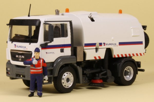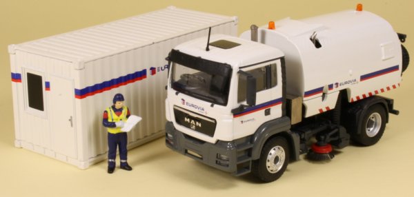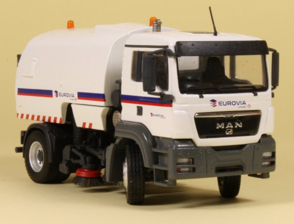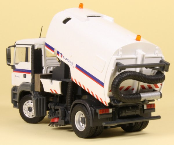 Most plant hire companies employ road sweepers to keep streets clean and tidy during construction and yet models of road sweepers are few and far between. Conrad has produced an exclusive edition version of the updated sweeper decorated in the Eurovia company colours on a MAN TGS 4x2 chassis.