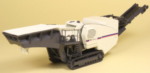 Presented here is the exclusive edition 1:50th scale Kleemann Mobicat MC110 Z EVO mobile jaw crusher which has been produced by NZG and finished in the Eurovia company decoration. The compact and reliable MC110Z EVO is the smallest mobile jaw crusher in the Kleemann range and is ideal for the processing of demolition and construction waste as well as primary crushing of gravel.