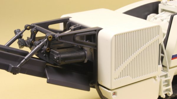 The main engine compartment is modelled with fine ridge detailing cast into the panel surface with authentic printing of the graphics. Even the emergency stop button has been included along with a folding ladder giving access to the upper platform. Observation platforms are located on both sides of the chassis with metal access steps and safety railings fitted, offering a good view of the jaw opening and feed hopper.