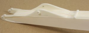 The boom and stick castings are clean and crisp with pre-drilled holes for ease of assembly and cast pipework on the back of the boom and stick with a length of flexible piping also supplied. The bucket casting has very good tooth detailing. |