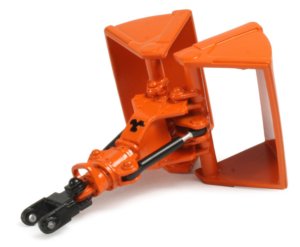 Gaz Evans Collection (GF-23) - J&B Grabs ClamshellPresented here is a fully built and painted J&B clamshell grab which is rated for 25-30 ton excavators when stick mounted and 40-50 ton material handlers. The body has crisp surface detailing including lifting eyes and cable guard with 360 degree rotation of the head and opening clams which are linked to open in unison, powered by working cylinders As supplied, the grab will fit any suitable sized excavator with a maximum stick width of 7.5mm while the inside spacers of the bracket can be filed down to allow a maximum stick width of 9.5mm. Two versions are available, one finished in orange (GF-23) and one finished in grey (GF-23G). The attachment is pictured here fitted to the Terex Fuchs MHL454 material handler. |