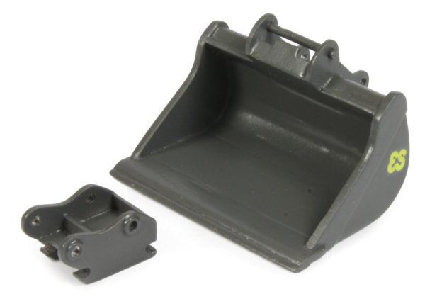 Gaz Evans Collection (GF-27) - Eurosteel Ditch Cleaning BucketPresented here is a 1:50th scale Eurosteel ditch cleaning bucket which will fit excavators in the 40-50 ton range and comes complete with a quick coupler, fully painted in a choice of black (GF-27) or grey (GF-27G) with Eurosteel decals. The Oilquick design coupler is compatible with other attachments in the range, including the Egli concrete crusher and the Eurosteel skeleton bucket and is shown below mounted to the Liebherr R954C. |