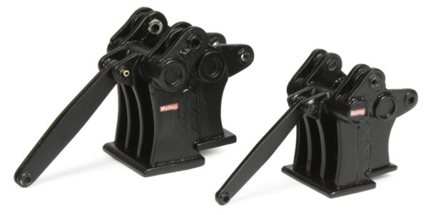Gaz Evans Collection (GF-31) - Mutley Plant MPP Mechanical PulveriserPresented here is a 1:50th scale replica of the Mutley Plant MPP mechanical pulveriser (item GF-31) which is designed for excavators in the 80 ton weight class. The attachment is produced from cast metal and comes complete with stick fixing plate, support arm and mounting pins. It will fit on excavators with a maximum stick width of 12.5mm and is shown below fitted to the Caterpillar 374D excavator. The image below shows the size camparison between the 80 Ton pulveriser (left) and the 50 Ton version (Right) |