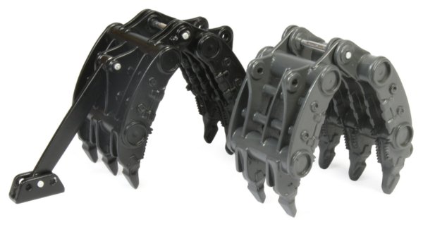 Gaz Evans Collection (GF-32) - Mutley Plant MPG Mechanical Rock GrapplePresented here is a 1:50th scale replica of the Mutley Plant MPG mechanical rock grapple which is designed for excavators in the 50 ton weight class. Two versions of the grapple are available, GF-32 is the corporate version in black while a version painted in Liebherr grey (Item GF-32G) is also available The attachment is produced from cast metal and comes complete with stick fixing plate, support arm and mounting pins. It will fit on excavators with a maximum stick width of 10mm and is shown below fitted to the Hitachi ZX470 and Liebherr R960 excavators. Above, GF-32 fitted to the Hitachi ZX470 while below, GF-32G fitted to the Liebherr R960 Demolition excavator. |