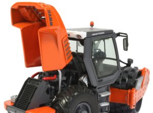 The cabin interior has been modelled well with the central control housing, steering wheel, controls and safety fire extinguisher clearly visible with metal bars extending from the frame to house the front facing light housings. The window seals are authentically added along with a front windscreen wiper for added realism while rear view mirrors have also been added with an amber warning beacon mounted to the roof.